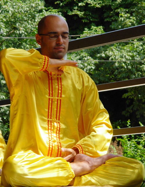 法轮功学员艾利希(Erich)在功法演示时,将组织者接到恐吓电话的事告诉了大家,并谈到,这与不久前,前中共驻悉尼领事馆外交官陈用林在加拿大揭露的,中共驻外使领馆操控中国留学生监视和打击异议人士的情况,如出一辙。