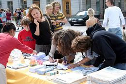 两天的活动结束了,看着人们明白真相后的反应,法轮功学员们很受感动。西人学员Mats表示:“中共对信仰‘真善忍’的法轮功学员长达八年的迫害。使更多的世人认清了中共的残暴。八年来,全世界的法轮功学员以坚忍不拔的精神,不断的在向世人讲述法轮大法的美好、揭露中共邪恶的谎言,到目前已有两千四百多万人明白了中共的邪恶本质,退出了中共的党、团、队。越来越多的被中共欺骗了的世人都清醒了,明显的感到正义力量越来越强大。我们还要不断的讲真相,揭露中共的邪恶,救度更多受蒙蔽的世人!”