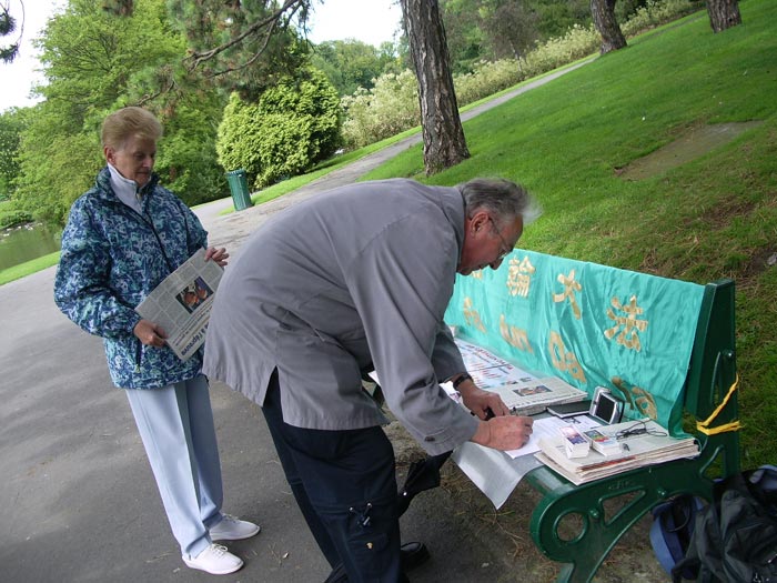 了解真相的法国民众签名支持制止中共对法轮功学员的迫害 |