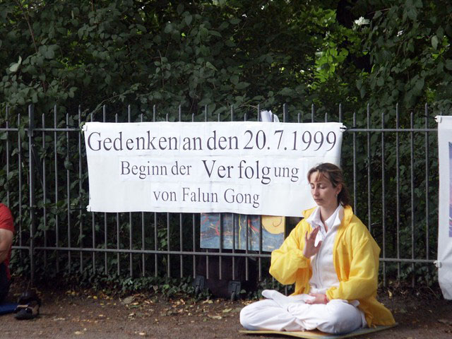 很多来办证的中国人和其他人都看到了这个集会。学员向他们派发真相资料,有些人还和学员交谈了很久。在抗议活动结束之前,汉堡电视台来了一个工作人员,他拍摄下了学员炼功的情景,并询问了有关详情。