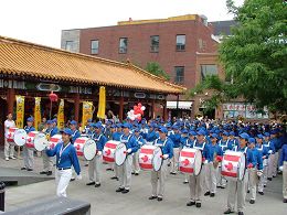 集会结束后,警察开道,天国乐团打头阵环绕唐人街游行,吸引许多中西人士观看,天国乐团的洪大气势震撼着整个唐人街。