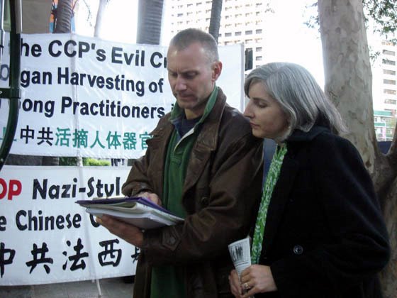 一对澳洲夫妇在征签表上签过名后表示:“去年我在堪培拉看见过一样的抗议活动,显然中国的情况仍未有所改善。看见有人挺身站出来反对迫害,真的很好,而我们希望国际特赦组织和其他组织都能知道,来了解情况,并且做出制止迫害的行动。”