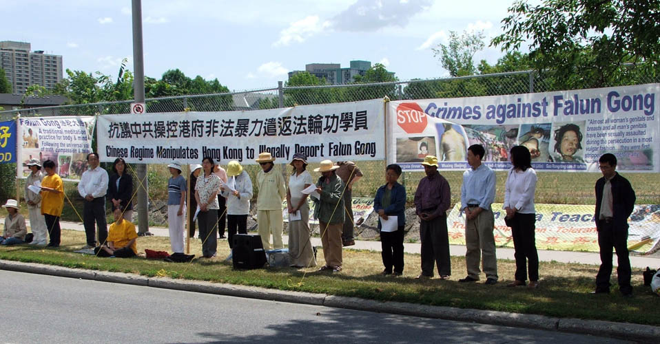 ![]() 渥太华学员中使馆前抗议中共指使港府暴力遣返法轮功学员 |