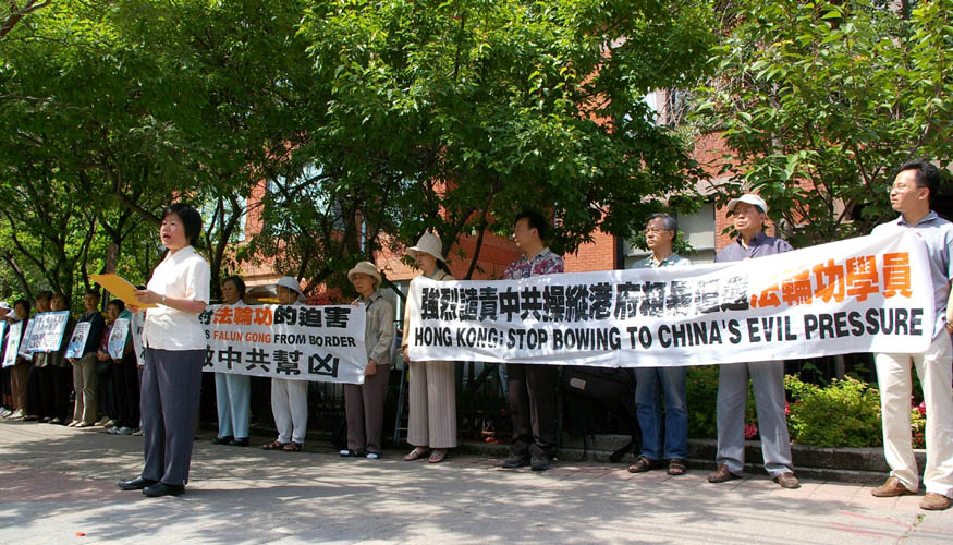 ![]() 法轮功学员及支持者在香港驻多伦多经济贸易办事处外抗议港府遣返事件 |
