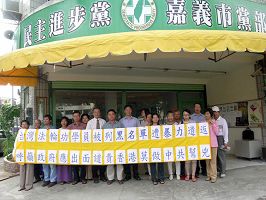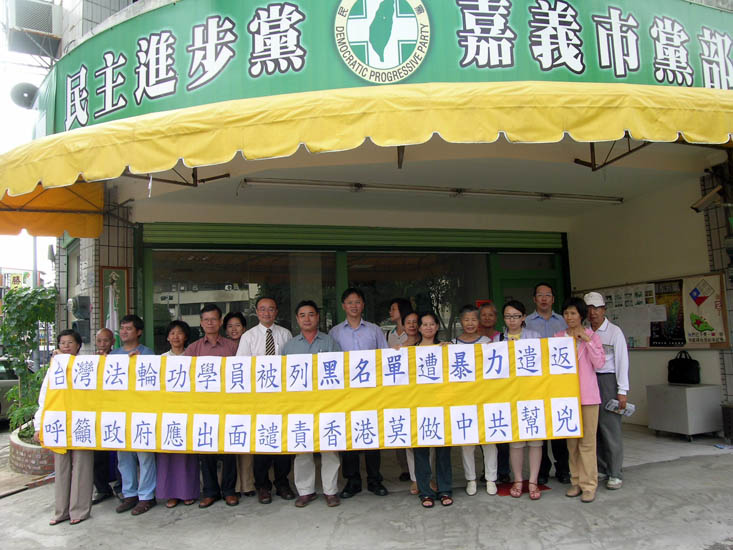 ![]() 嘉义法轮功学员向民进党陈情,谴责港府暴力遣返并与陈茂松主委合影 |