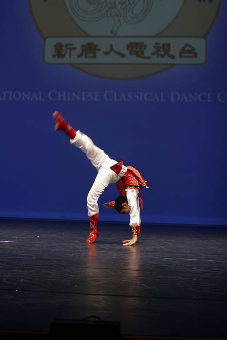 ![]() 47号选手在表演舞蹈节目时跃起空中的舞姿 |