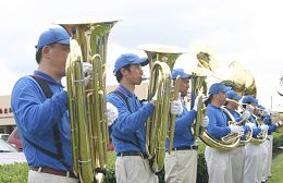 德州法轮功学员组成的天国乐团队伍整齐,手持锃亮的铜管乐器,在现场演奏“法鼓法号震十方”、“法轮大法好”等曲目,吸引了路人的注意。一对夫妇走近队伍,一直在认真的听成员发言,最后他们对学员说:“你们是中国的希望”。