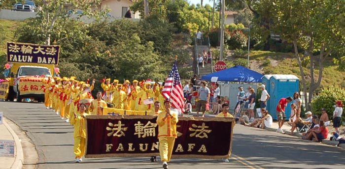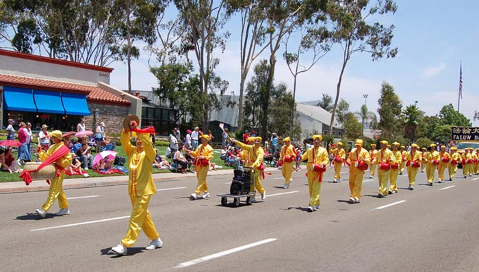 位于南加州的圣地亚哥一年四季气候宜人,七月初更是阳光明媚。游行经过的街道上万头攒动,人们身着盛装,手里拿着国旗、气球和各式饰物,一派欢乐景象。圣地亚哥市市长杰里•桑德斯(Jerry Sanders)、第四十九区众议员Darrell Issa、第五十区众议员Brian Bilbray都参加了Rancho Bernardo的游行,市长桑德斯先生是游行的大礼官。法轮功学员与他们進行了愉快交谈。
