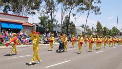 Rancho Bernardo游行的组织者高兴的对学员说:“你们去年就来了,我还记的你们色彩鲜艳的服装,欢迎你们又来到这里!”