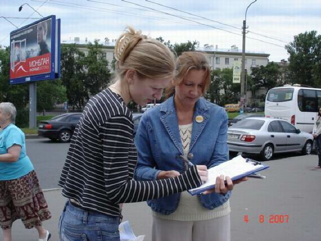 八月四日的活动是在乔勒那亚列奇卡地铁站附近的麦当劳快餐店旁边举行的,行人非常多。麦当劳门前打扫卫生的工人,每天的工作量很大。他一看学员们在那儿活动就非常不高兴,说活动会增加他的工作量。法轮功学员非常理解这位老伯的心情,面带笑容去给老伯耐心讲真相。老人读了真相资料后,转变了态度,他知道了这是一群修炼“真善忍”的好人,他们是在做世界上最正最好的事。这位老伯不仅自己在征签簿上签名支持法轮功学员反迫害,还几次主动过来清理行人丢下的烟头纸屑等。他的变化感动了一位一直在旁边观望的妇女,这位妇女在老伯之后也主动走过来签名声援法轮功。