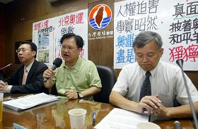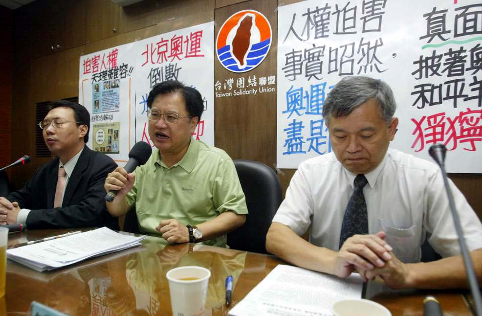 ![]() 台联立法院党团十日呼吁台湾民众,不要被中共各项奥运宣传所迷惑,忽略中共政权持续践踏人权的各项恶行。(从右至左,台湾法轮大法学会理事长张清溪、台联立委曾灿灯、黄适卓) |