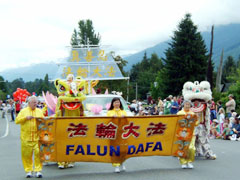 也许读者还记得今年六月六日在斯诺阔米山谷报(Snoqualmie Valley Record) 头版报导的“斯诺阔米市的国际事件 - 褒奖颁发后,斯诺阔米市市长和法轮功学员会面中国外交官” 一文 (详文请参阅 https://d2s3ombhnov3zf.cloudfront.net/mh/articles/2007/6/14/156905.html)。 该市和附近城市的市民们因此而进一步了解了法轮功和发生在中国的迫害。在今年的游行中,人们为法轮功的队伍热烈鼓掌。法轮功学员的花车以庄严的“法船”造型、绚丽的色彩、祥和美好的炼功场面吸引了男女老少。腰鼓队的表演更使人们精神抖擞。