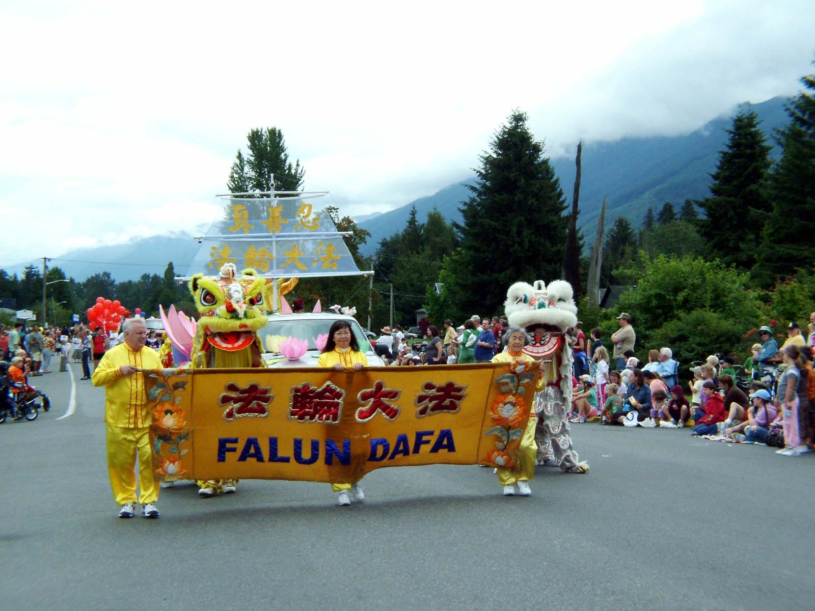 八月八日出版的“斯诺阔米山谷报”刊登了法轮功学员的花车在此次游行中的照片,并注解“法轮功学员在花车上展示静修功法。该团体荣获多项嘉奖。”该报并在同一版面罗列了游行嘉奖第一和第二名得主,法轮功被列数次。