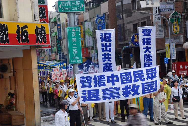 中共自一九九九年迫害法轮功以来,已使无数修炼“真、善、忍”的法轮功学员被虐杀、关押、家庭离散。二零零四年大.纪.元;时报发表了系列社论《·九·评*共产党》,揭露中共的邪恶本质。明白真相后的中国民众纷纷声明脱离中共;二零零六年三月,媒体揭露中共活体摘取法轮功学员器官、贩售牟利并焚尸灭迹的反人类恶行,引起举世关切瞩目,更推高了退!党!的浪潮。迄今已近二千五百万人声明退出中共的党、团、队。这次高雄大游行,是海外正义人士声援退!党!勇士的具体行动。