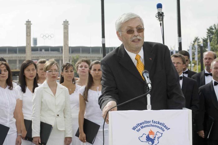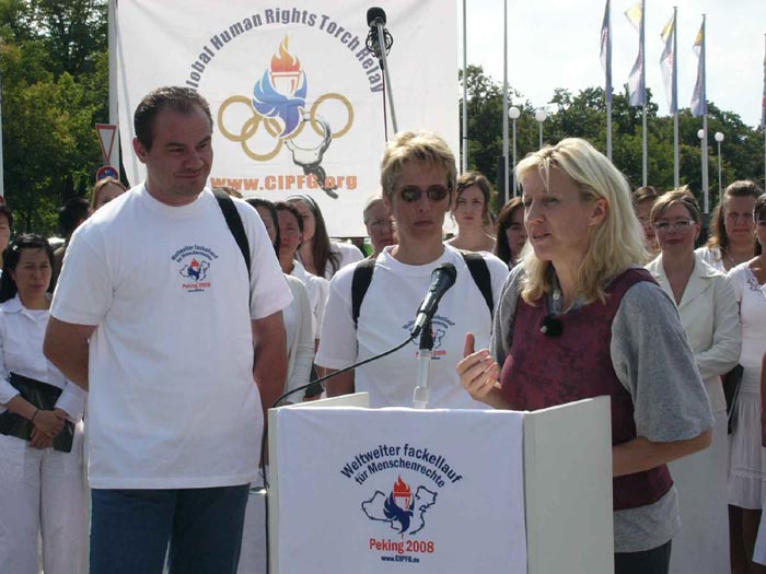 德国人权圣火传递大使,曾创女子4X100米接力跑世界记录的前东德运动员, 现任作家,柏林表演艺术大学教授盖普尔(Geipel)女士认为:“只有在一个自由的中国才能够,才允许举办奥林匹克运动会。”