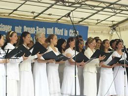 ![]() “为你而来”合唱团在布莱柴特广场上演唱 |
