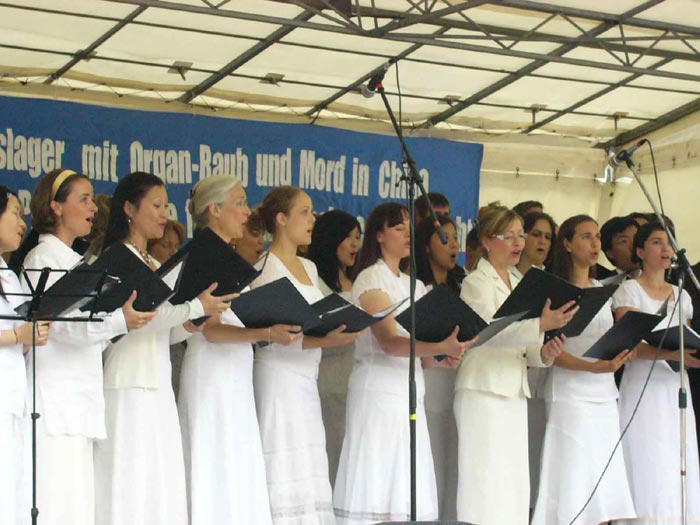 两位偶然路过此地的柏林人布理葛忒•博格瑟(Brigitte Bergese)和米歇尔接受了采访,布理葛忒说:“我们只是偶然路过,直到我们听到关于法轮功的内容,我们才停下了脚步。我们以前得到过很多关于法轮功的消息。(在东德)我们曾经被(和自由世界)分开,所以我们能够理解失去自由意味着什么,我们也很能想象法轮功学员在中国的遭遇是什么样的。”