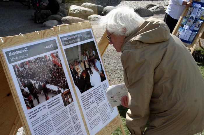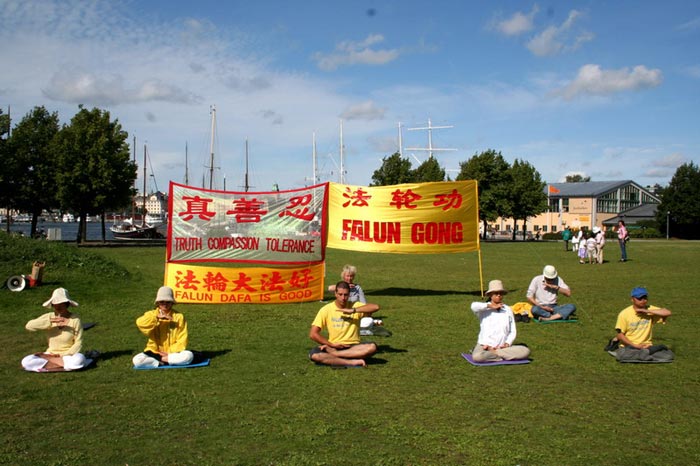 沉船博物馆是人们来斯德哥尔摩旅游观光的最佳景点之一,来自世界各国的游客和本地民众络绎不绝。自从法轮功学员利用双休日在这里洪法讲真相,这里又多了一道独特的风景。无论是从这里经过的,还是在入口处排队等待着参观的人们都不约而同的把目光转向了法轮功并驻足观看,人群中“法轮功”、“法轮功”的声音持续不断。人们不停的拍照,摄像。还有人站在原地模仿着学员,不停的用手比划着炼功动作……