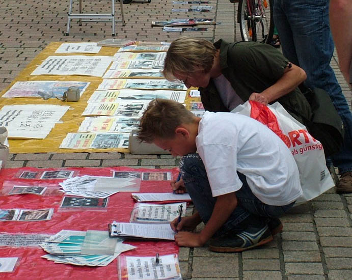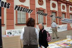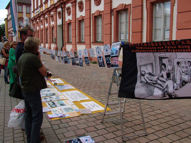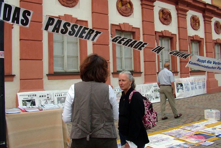 许多音乐团体在街头演出,当了解了法轮功真相后,他们都找别的地方去演奏了,不再用他们的音乐盖住法轮功学员揭露中共活摘器官罪行的德语播音。他们还表示会上网找人权圣火的主题歌的曲谱来演奏。