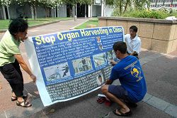 ![]() 孟菲斯罗兹学院四年级学生约翰在拍摄揭露中共活摘器官的图片 |