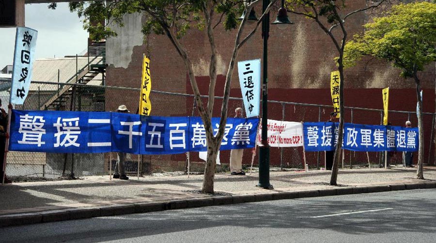 ![]() 布里斯本中国城声援退!党!大潮的横幅 |