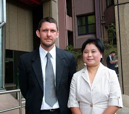 ![]() 原告章翠英和律师斯莱特先生 |