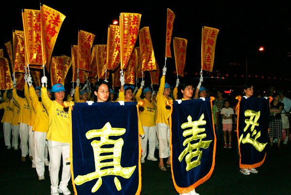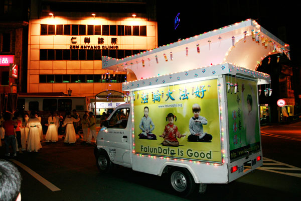 ![]() 基隆市二十六日举行中元祭放水灯游行,邀请台湾法轮大法学会团体演出 |