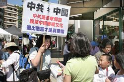在法轮功学员的摊位,一些来自中国大陆的人士退出了中共恶党的组织。一位老先生看到学员举着的“中共不等于中国”牌子,他表示非常支持。他说共产党坏透了,他家人是粮食局的局长,在“文革”时被枪毙了,家里的东西都被抢走了。