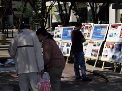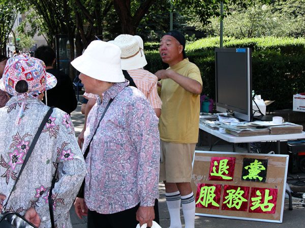 一位老太太仔细看完·九·评*展板后,拉着一个退!党!义务工作人员的手就倾诉起来,因为她讲广东话,这个退!党!工作人员似懂非懂的听了个大致意思。后来,这个老太太只好离去。