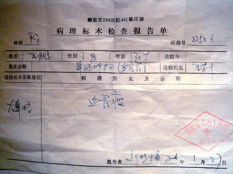 王鹏被非法关押在铁北第一看守所的一年多时间里,鼻子被强迫灌食后出现严重的大量出血,一天出现二至三次,每次出血量大约有半茶杯左右,严重时在二零零五年十一月到十二月份之间,正是王鹏被长春市绿园区法院非法秘密判刑期间,没有任何人通知家属,王鹏身体状况家属一概不知,它们严密封锁消息。当时家属问过绿园区法院书记员许刚,王鹏身体情况如何,许刚支吾着说“还行吧”。