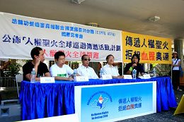 CIPFG成员、立法委员蔡同荣、田秋堇也参与记者会声援。蔡同荣说,如果人权圣火来到台湾的时候,他一定加入圣火路跑的行列。