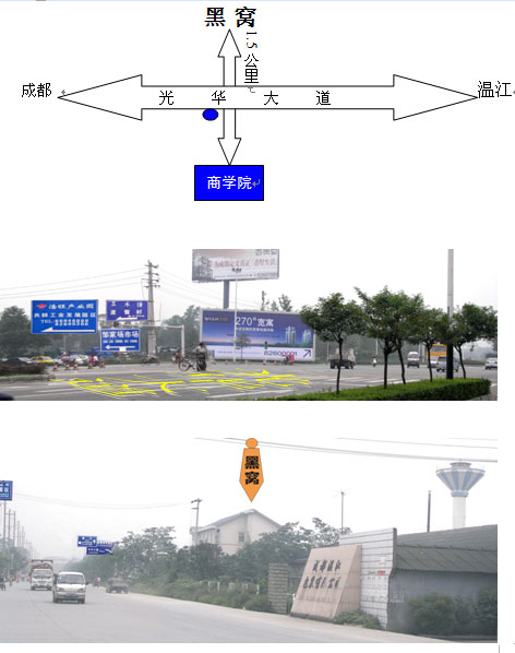 1.309路(成都——温江)或904路在光华大道二段站(网络商学院站)下,往邹家场市场方向进去1.5公里处,在歪嘴大盆鱼(共耕村一组一号饭馆)的正对面,成都温江荣盛机械有限公司的左斜对面,包装公司正门出来的右手边。