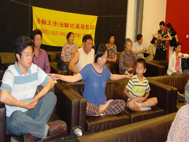 ![]() 参加学习班的学员正在学习法轮功的第五套功法--神通加持法 |