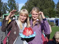 ![]() 两位姑娘拿着纸莲花多高兴 |