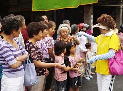 ![]() 法轮功游行队伍经过最具金门文化特色的模范街 |