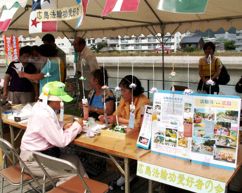 广岛法轮功学员是首次参加这个节日。她们表演的古典舞“花仙”和法轮功的五套功法演示,令观众耳目一新。此外,折莲花展位更是吸引了大量的市民。人们一边学着做莲花,一边听学员介绍什么是法轮功以及法轮功修炼者在中国无辜遭受迫害的真相。