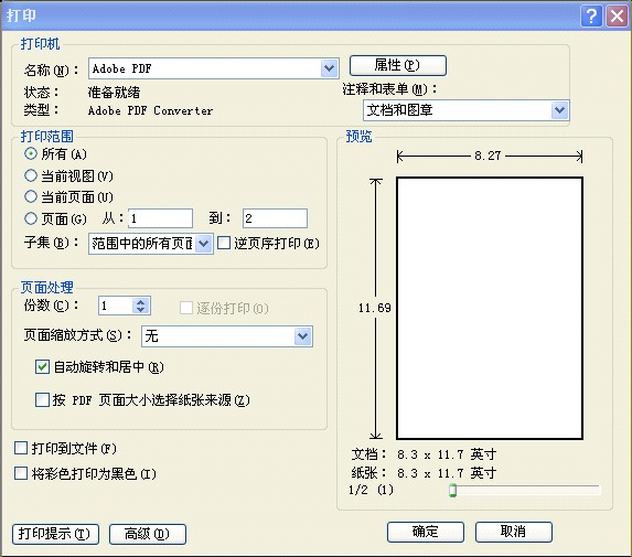 点击右下角的确定,Adobe PDF虚拟打印机就会打印出一份新的PDF文档(第一次打印时可能会出现句柄无效的提示,再打印就没问题了)。这份文档就只有原来文档的奇数页了。