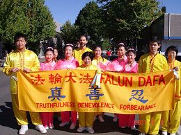 在形式各异的游行队伍中,法轮功学员的表演格外受欢迎。身着中国古装的仙女们手捧莲花以优美的舞姿向人们送去美好的祝愿。柔和的功法以其深邃的内涵和至善至美的风格,展现着大法的殊胜。游行中人们看到,一个被中共残酷迫害长达八年的善良团体,没有一丝怯懦、消沉,更没有仇恨,有的是大法带来的慈悲与光明。