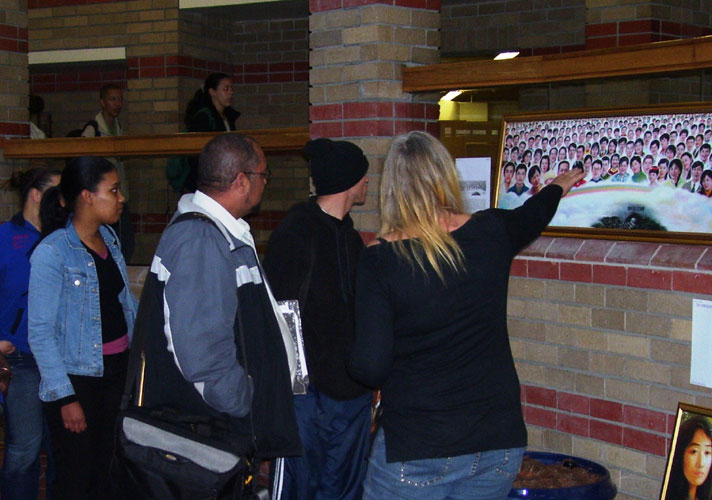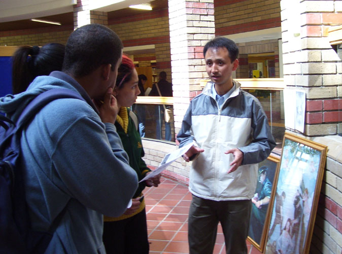 ![]() 西开普大学学生们认真听法轮功学员介绍画作背后的真实故事 |