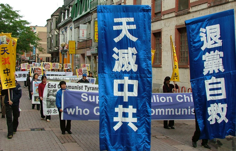 集会持续了两个多小时,许多民众纷纷发言,呼吁更多人认清中共的邪恶本质,远离中共,退!党!自救。集会后,蒙特利尔民众环绕中国城游行一个多小时,向更多的民众传达二千六百万人退出中共的信息。