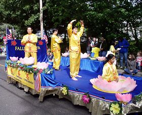 ![]() 法轮功学员参加绿树节游行,受到欢迎 |