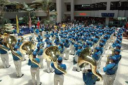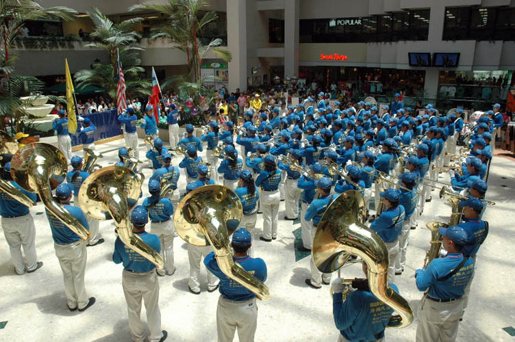 天国乐团到哥打晋那巴鲁最热闹的商场Centre Point演奏。国庆假期,商场内挤满人潮。天国乐团聚集在商场四楼的舞台。每层楼的市民纷纷驻足围观。第一首演奏的曲子正是马来西亚的国歌。第一个音符响起,围观的人潮首先有点惊讶,紧接着马上立正。演奏完毕,全场爆发如雷的掌声和欢呼声。