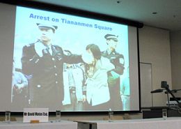 ![]() 法轮功发言人张而平在讲述大法在中国被迫害真相 |
