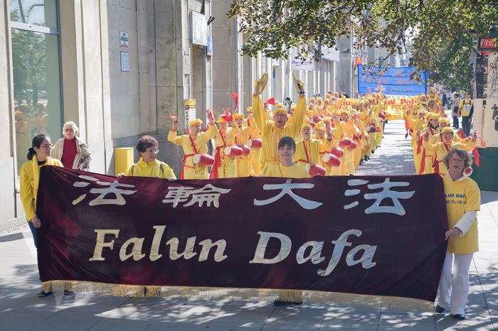 中午法轮功学员开始进行游行,由腰鼓队开道,仙女队随后,共分成法轮大法洪传世界、法轮功学员反迫害、揭露中共活体摘取法轮功学员器官罪行,以及广传·九·评*和声援退!党!大潮等几大方阵。游行队伍经过华沙最热闹的大街,最终抵达中使馆,并在那里举行了集会。欧洲议会副主席麦克米兰•斯考特为波兰的法轮功集会发来了贺信。
