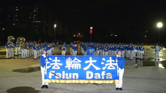 位于北台湾台地上的林口运动公园是一座多功能的运动场地,为人们繁忙的生活增添几许休闲的步调。二十二日晚天国乐团来此参与演出的百多位成员,大多来自北台湾;他们首先以《法轮大法好》的乐章,揭开了晚会欢庆中秋的序幕。