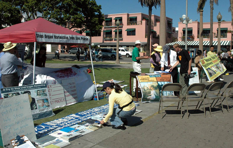 圣塔莫尼卡海滩被称为南加州必看的旅游胜地,每天来自世界各地的不同种族不同肤色的游人络绎不绝。自二零零六年四月份中共活体摘取法轮功学员器官的黑幕被曝光后,当地法轮功学员便开始在这个旅游景点进行模拟演示揭露中共活摘器官,使世人更加清楚的了解这场残酷的迫害。
