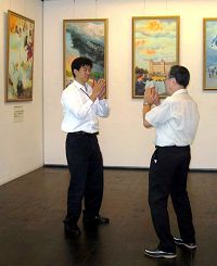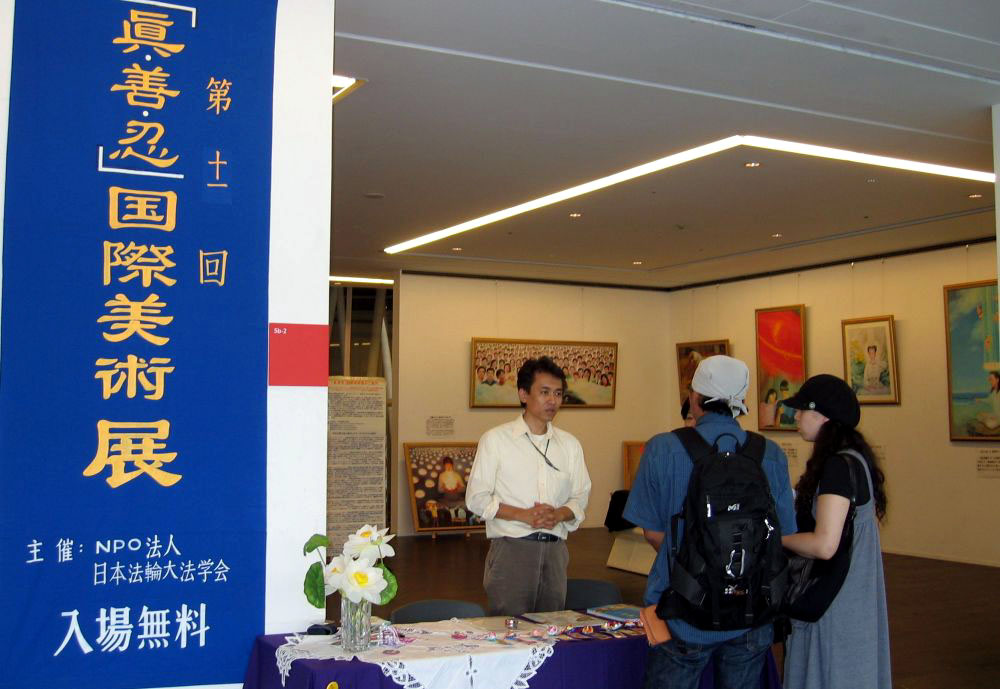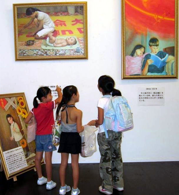 连续参加几届“真善忍美展”、做导览的日本法轮功学员渡边夫妇介绍说,从最近的几次美展来看,感到越来越多的日本民众开始关注法轮功的事情,有许多的有缘人也来了,特别是一些日本青年人对展览的关注和认真倾听的态度让他们感到很欣慰。细心的渡边太太告诉记者,有些小学五、六年级的学生,作品说明中有的字还不认识,就请她读给他们听。有一个小女孩,父母家人看过展览离开展厅后,她却认真的听每一幅画的讲解,并问问题,还说她很喜欢画画,她全部看完后,才满意的和父亲走了。有位年轻人看到第一幅佛的雕像时,恭敬的双手合十致意。有位先生看到画中遭受中共各种酷刑迫害的法轮功学员,不由的摘掉戴在头上的帽子,满脸敬意的仔细的看那些画。