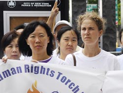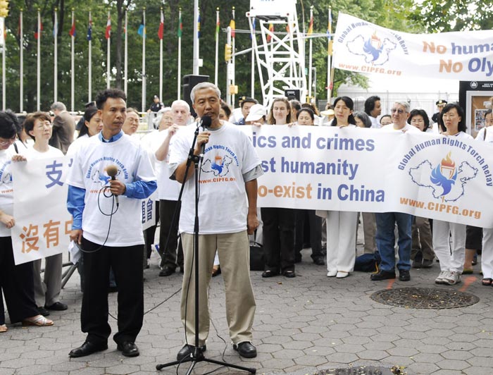 纽约父母行动(Parent in Action)总裁比尼(Rolando Bini)、纽约佛堂会住持中垣显实、缅甸抗议群体灭绝人士Zaw Win、老挝民主联盟秘书长布楼(Thong Boulom)等均在集会上发言支持人权圣火传递,要求中共立即停止迫害法轮功,呼吁“没有人权就没有奥运”。