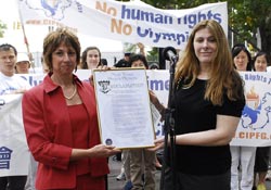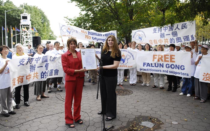 纽约州参议员戴爱兹(Ruben Diaz)给“人权圣火”发布了褒奖,并派其助手Ann Noonan女士到场宣读。戴爱兹参议员在褒奖中表达了对法轮功学员维护基本人权的努力的赞许,并要求中共停止对法轮功和其他信仰团体的迫害。