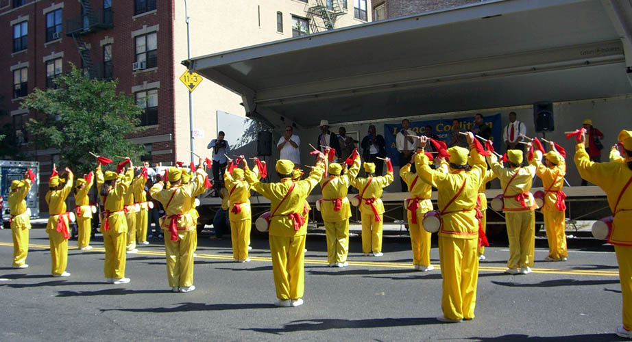在“法轮大法好”歌声的伴奏下,腰鼓队的出色表演得到了人们的阵阵掌声。人们赞叹大法弟子的表演,纷纷接受真相资料,对大法弟子的到来表示感谢。